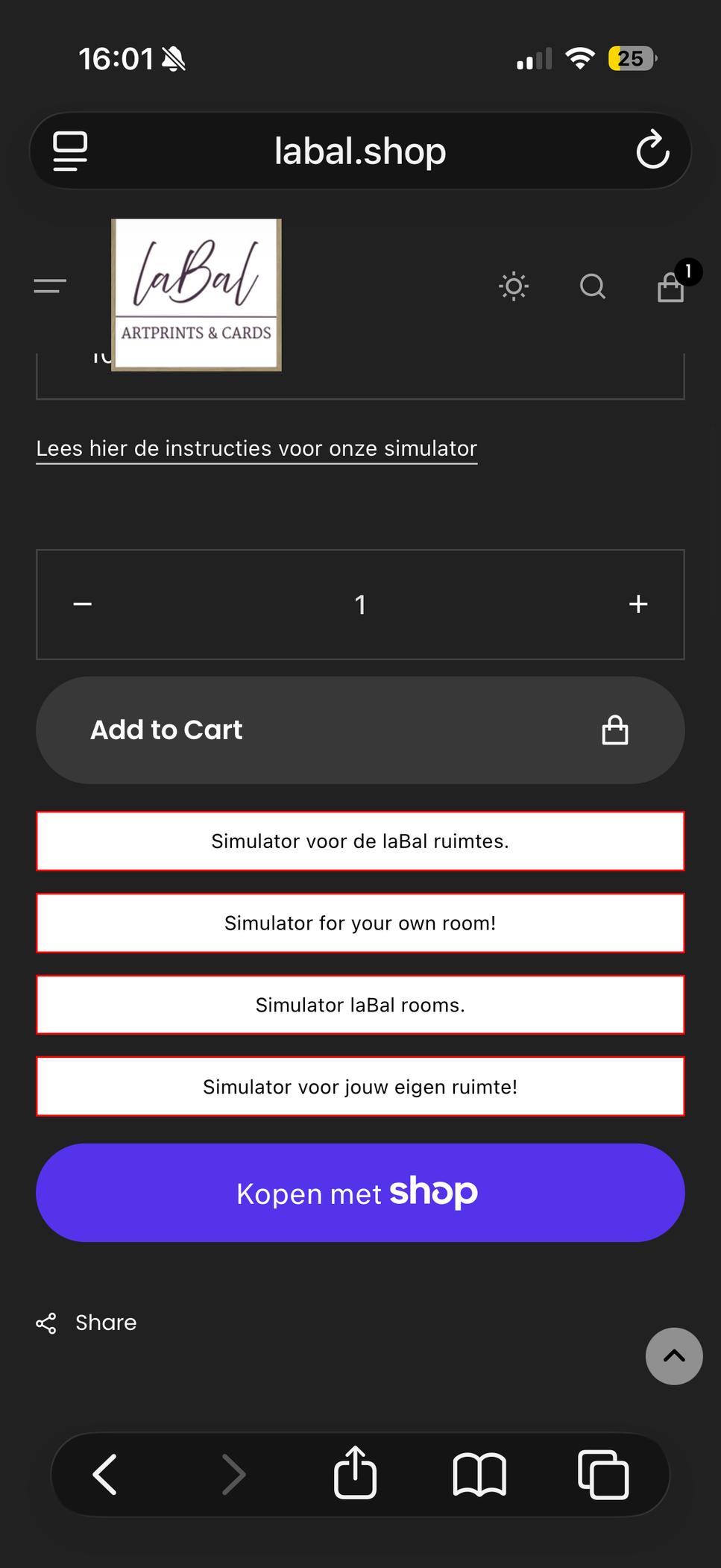 In onze webshop kunt met de Art simulator van ARTplacer in een paar stappen onze Artprints bekijken in één van onze vooringestelde ruimtes of direct bij jou zelf aan de muur.