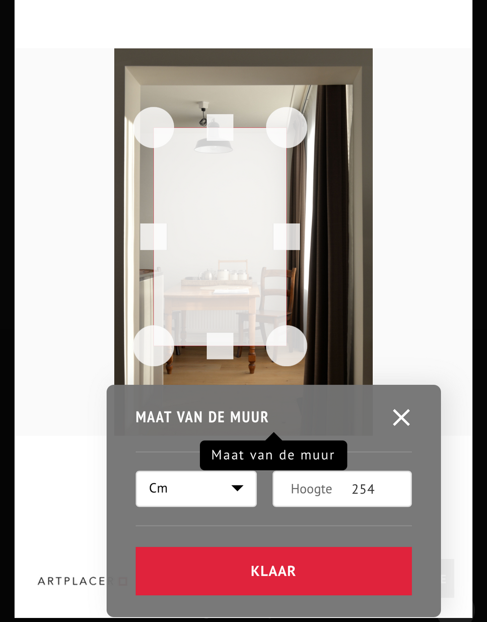 Na jouw keuze of uploaden definieer je de wand en stel je de hoogte in waarna je kiest voor opslaan en bekijken. (KLAAR)