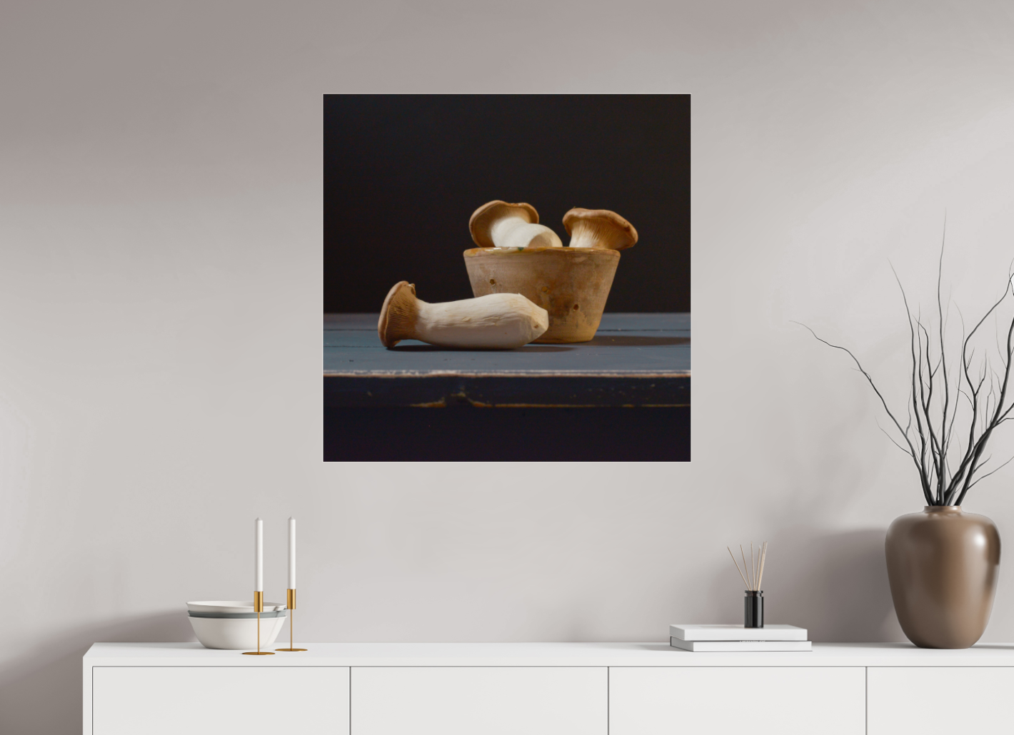 Deze fine art print is verkrijgbaar in vier verschillende uitvoeringen, zoals directe print op dibond, Hahnemühle aquarelpapier of kant-en-klaar ingelijst. Ideaal als exclusieve wanddecoratie in een moderne keuken, een landelijke eetruimte of als rustig accent in een gallery wall.