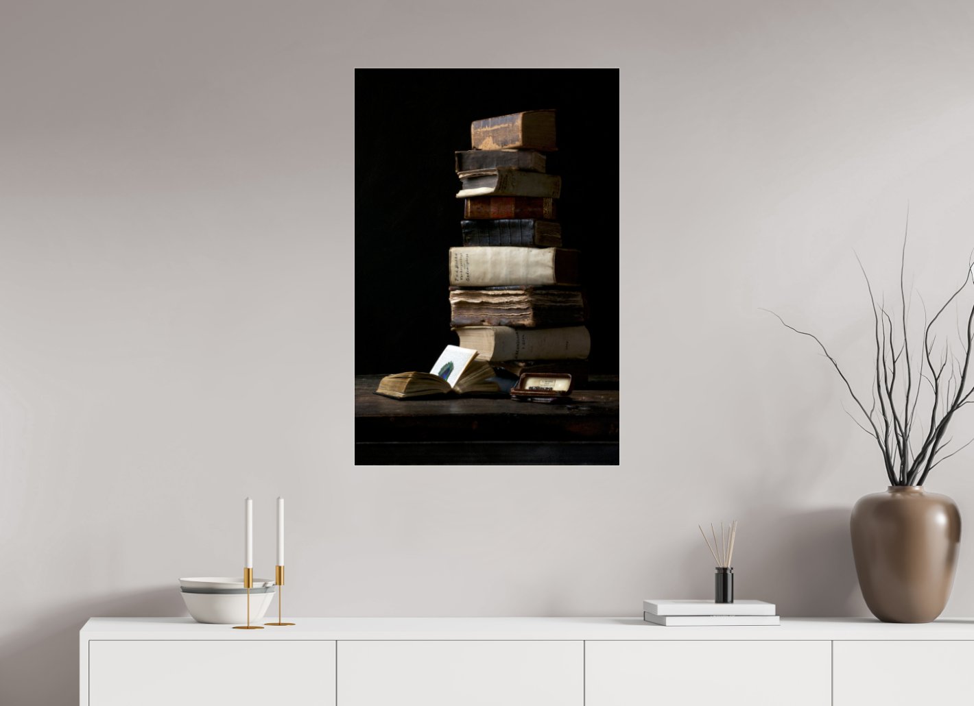 Een verstild eerbetoon aan geloof, vergankelijkheid en vertrouwen. In dit realistisch stilleven toont Dirk Bal een toren van oude boeken, gedragen door tijd en tekstuur.